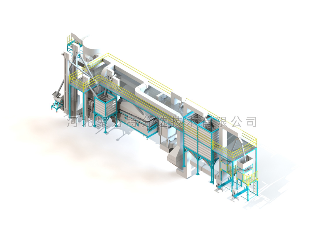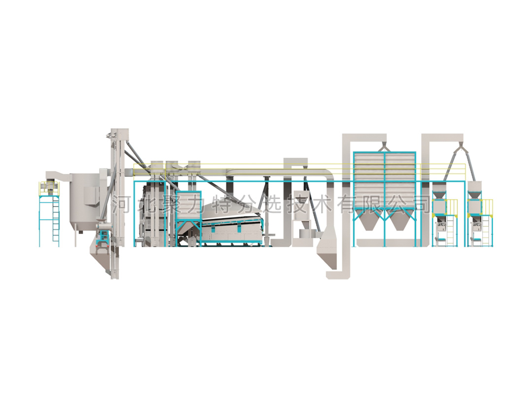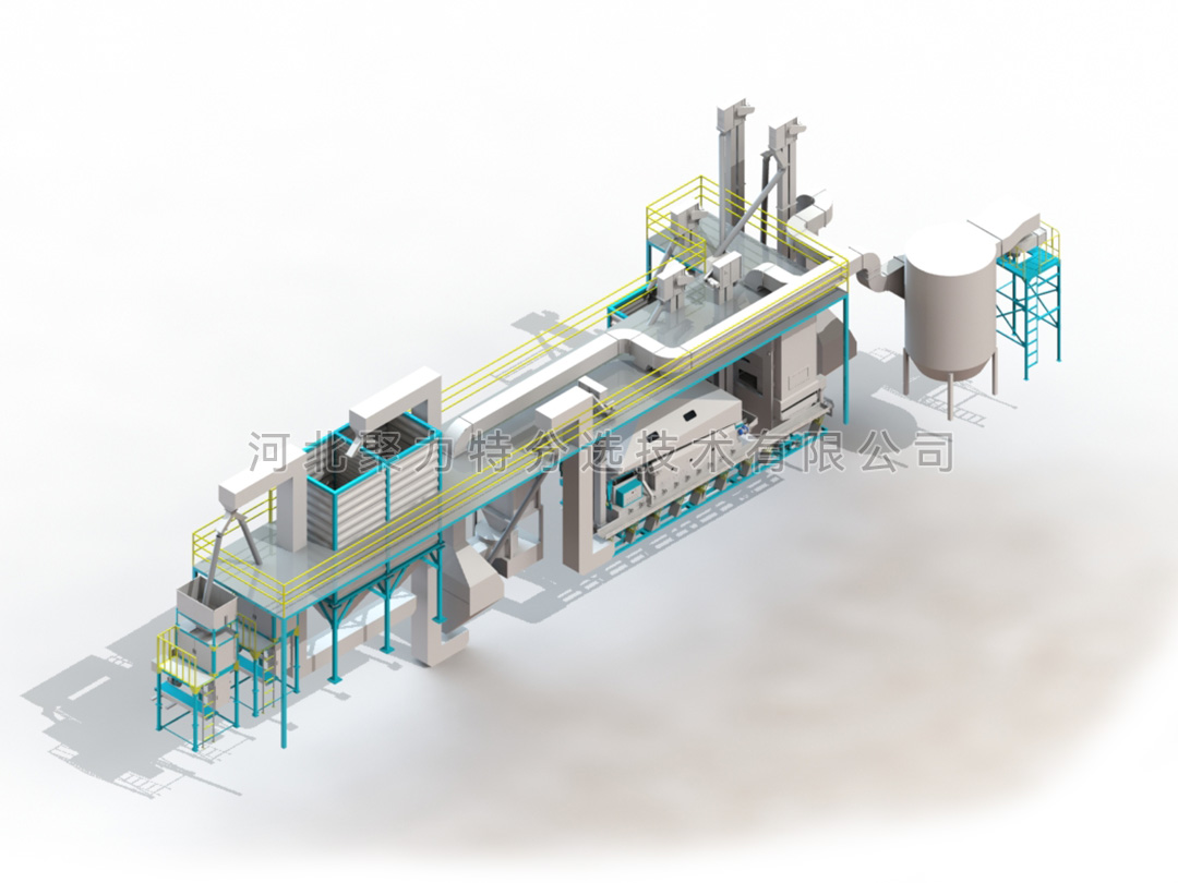 種子加工生產(chǎn)線由風(fēng)篩清選機、比重精選機、種子包衣機、定量包裝秤、提升設(shè)備、除塵系統(tǒng)、控制系統(tǒng)組成。