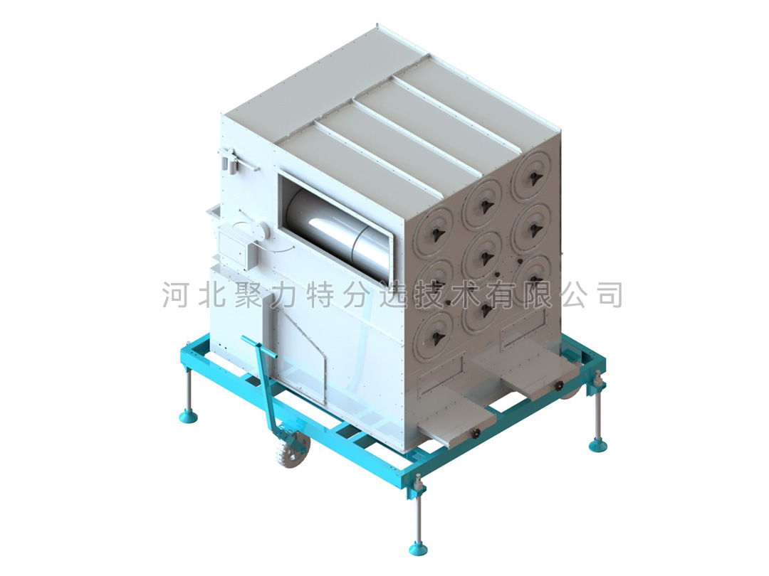 離心風機吹出含塵氣流經(jīng)入風口進入脈沖除塵箱,由于除塵箱和外部風壓差的存在,含塵氣流會迅速通過脈沖除塵箱內(nèi)3×3均布的9個濾筒后排入外部空氣中,氣流中的粉塵被阻擋在濾簡外表面上,排入外部空氣中的則為過濾后的清潔空氣,最終完成含塵氣流的粉塵清除功能。脈沖噴吹控制儀接通脈沖電磁閥定期向濾筒內(nèi)部噴吹 0.6-0.8MPa 高壓空氣,高壓空氣由內(nèi)向外穿過濾筒,將附著在濾筒外表面上的粉塵除去,塵粒落入下部集塵斗,定期清理。