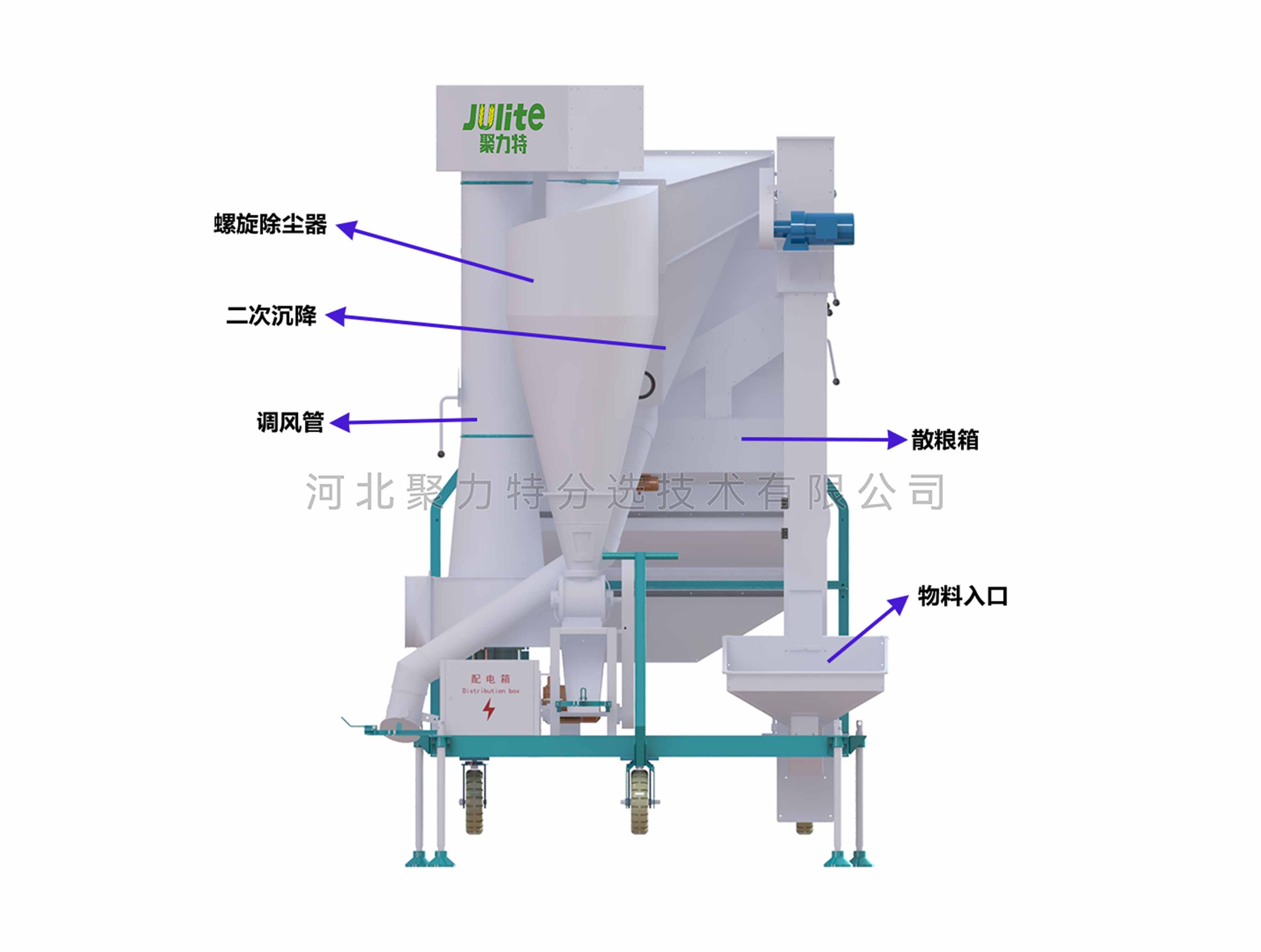 1、效果好:雙空氣篩,二次風(fēng)選,輕雜去除效果更好,成品凈度更高;